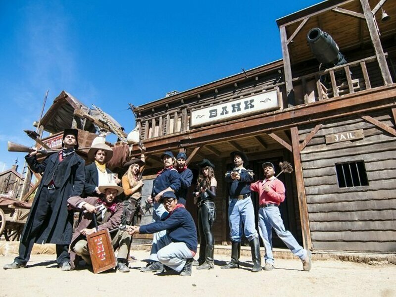 Зона «Дикого Запада» оформлена в духе американских вестернов, тут можно на баллоне прокатиться по ревущей горной реке.